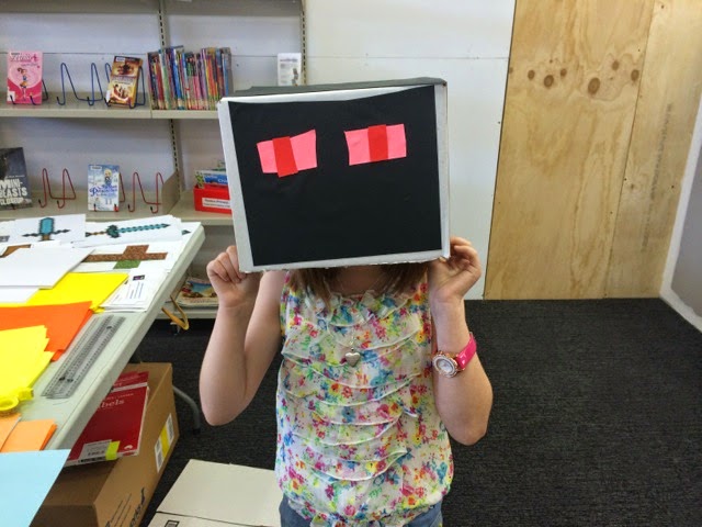 *I printed off a few different paper craft cubes out (chest, dirt/grass block, diamond block) and kids cut and taped (or glued) them together.